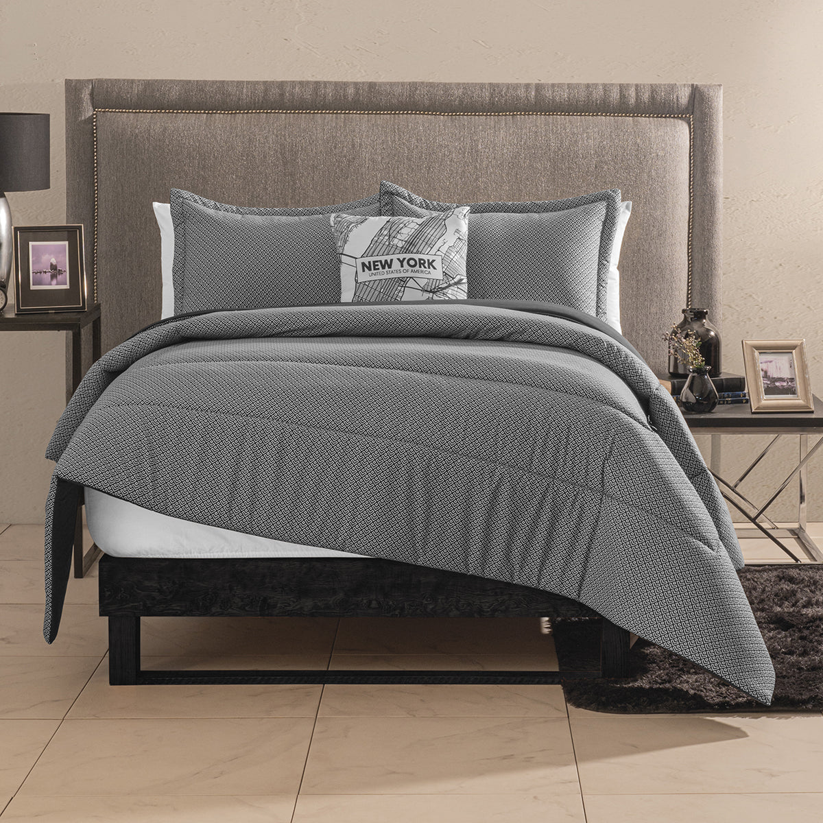 Nuestro JUEGO DE EDREDON BILBOA es ideal para todo el año, diseñado con fundas y cojines decorativos a juego.